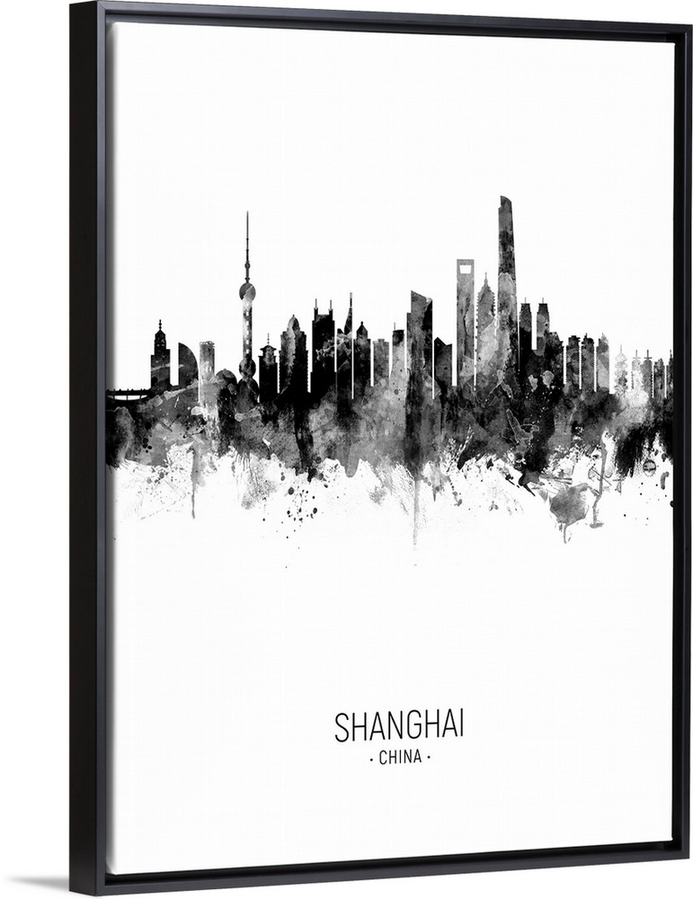 <p>Watercolor art print of the skyline of Shanghai, China</p>