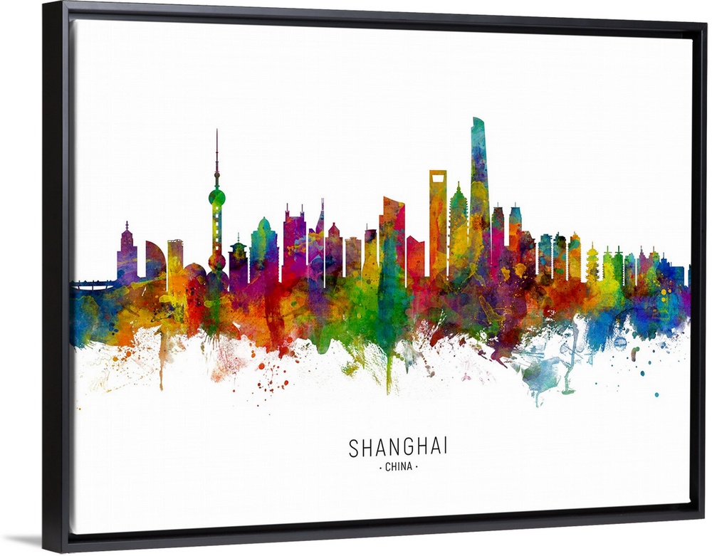 <p>Watercolor art print of the skyline of Shanghai, China.</p>