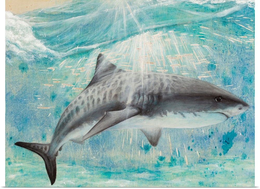 Art Coastal Blue Wall Art Contemporary Art Wildlife Painting Wildlife Marine Life Shark