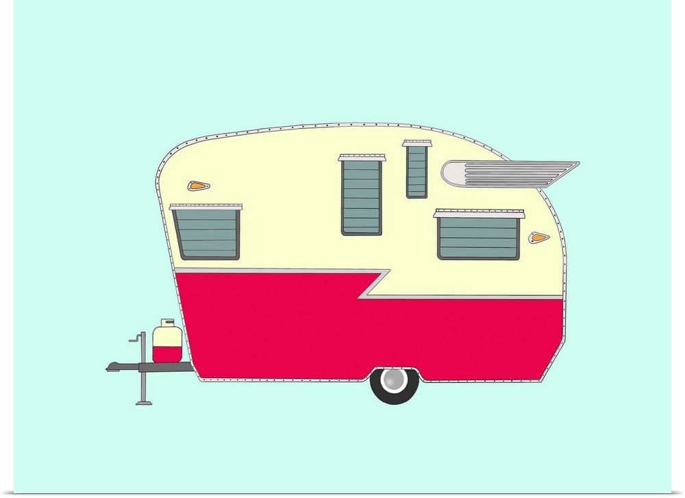 Art Blue Wall Art Decorative Art Graphic Art Retro Art Transportation Caravan