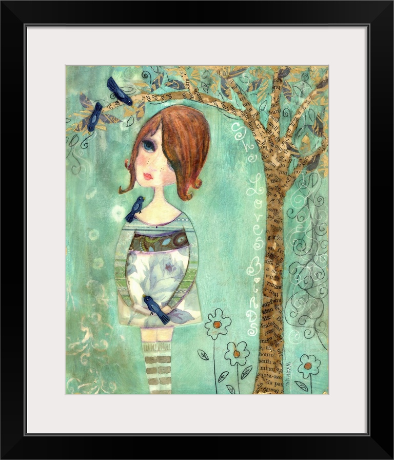 Art Wyanne Art Decorative Art Green Wall Art Painting People Figurative Watercolor Wildlife Bird