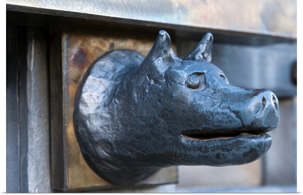 <p>Detail of the she-wolf handle at the fence of Arch of Constantine, Arco di Costantino, Rome, Unesco World Heritage Site, Latium, Italy, Europe.</p>