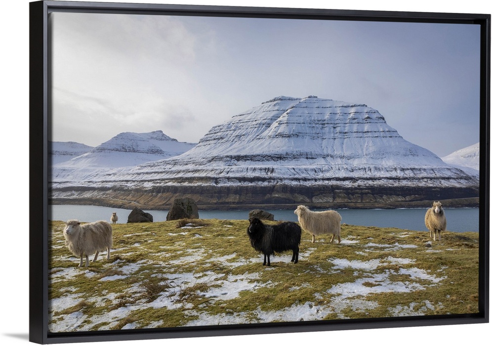 <p>Sheep along the Funningur fjord. Eysturoy, Faroe Islands</p>