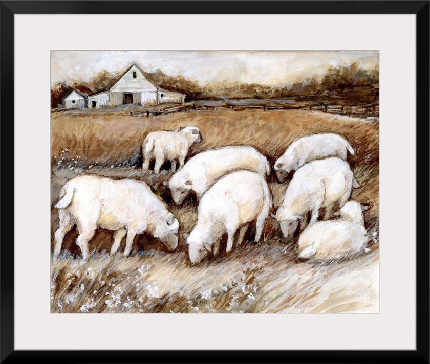 Art Farmhouse Decorative Art Landscapes Barn Painting Wildlife Sheep Susan Winget