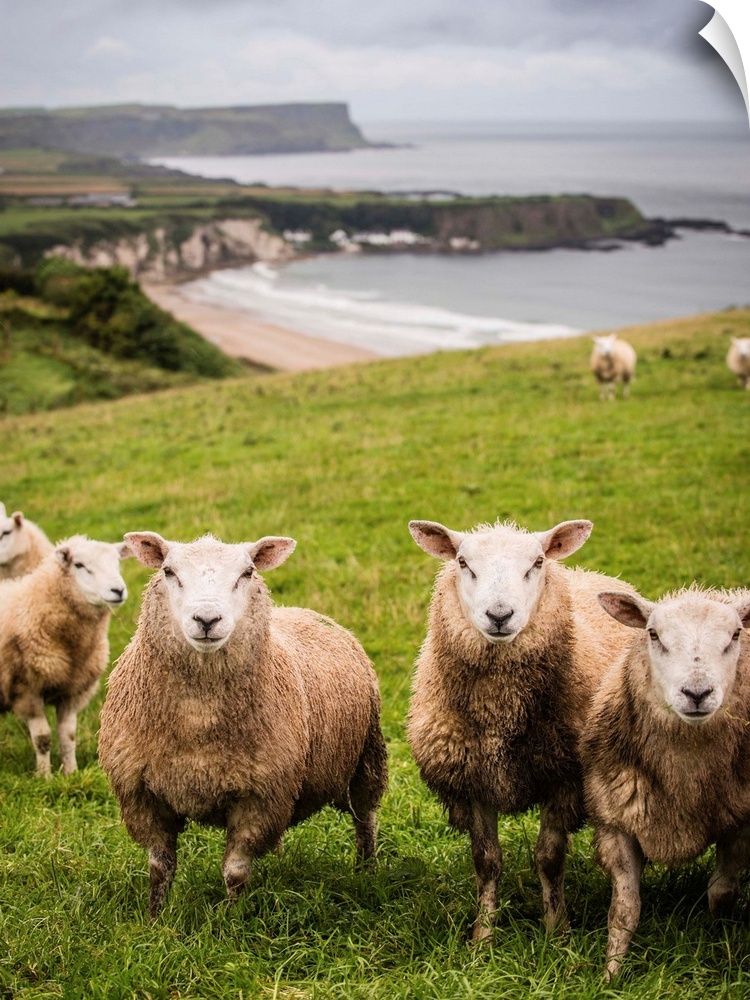 <p>Photograph of sheep in a field on the coast in County Antrim, Northern Ireland.</p>
