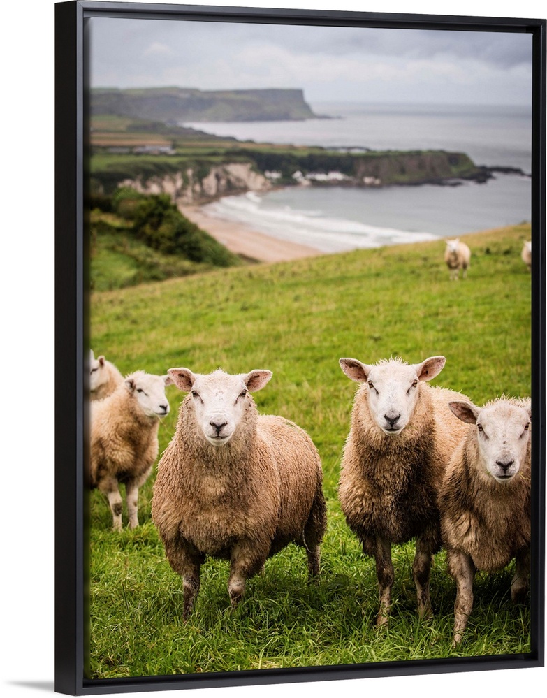 <p>Photograph of sheep in a field on the coast in County Antrim, Northern Ireland.</p>