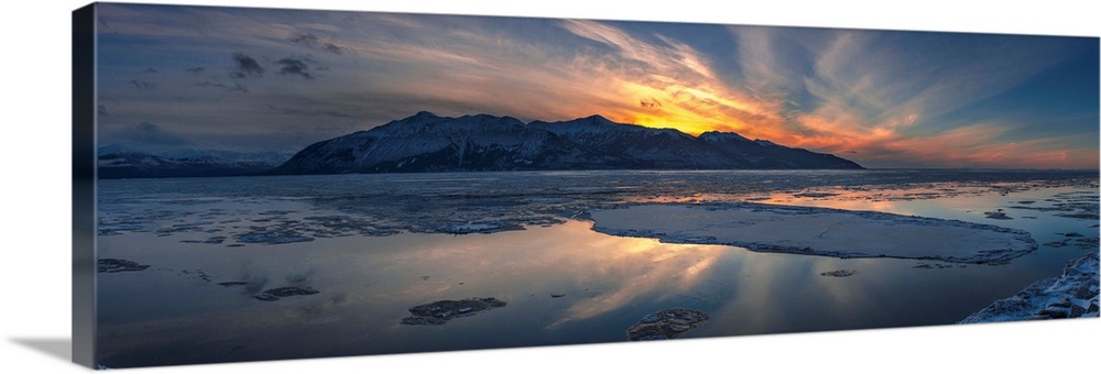 <p>Sheets of ice being carried out with outgoing tide on Turnagain Arm at sunset, south of Anchorage, Alaska.</p>