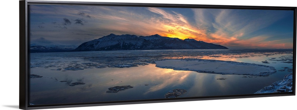 <p>Sheets of ice being carried out with outgoing tide on Turnagain Arm at sunset, south of Anchorage, Alaska.</p>