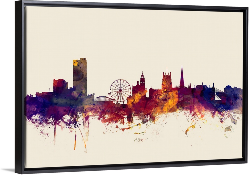 <p>Watercolor art print of the skyline of Sheffield, England, United Kingdom.</p>