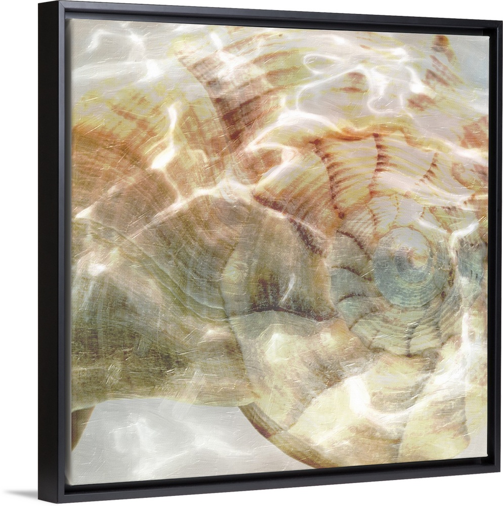 <p>Close up of a shell with shimmering light from water.</p>