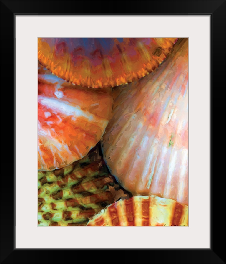 <p>A contemporary painting of a close-up colorful seashells.</p>