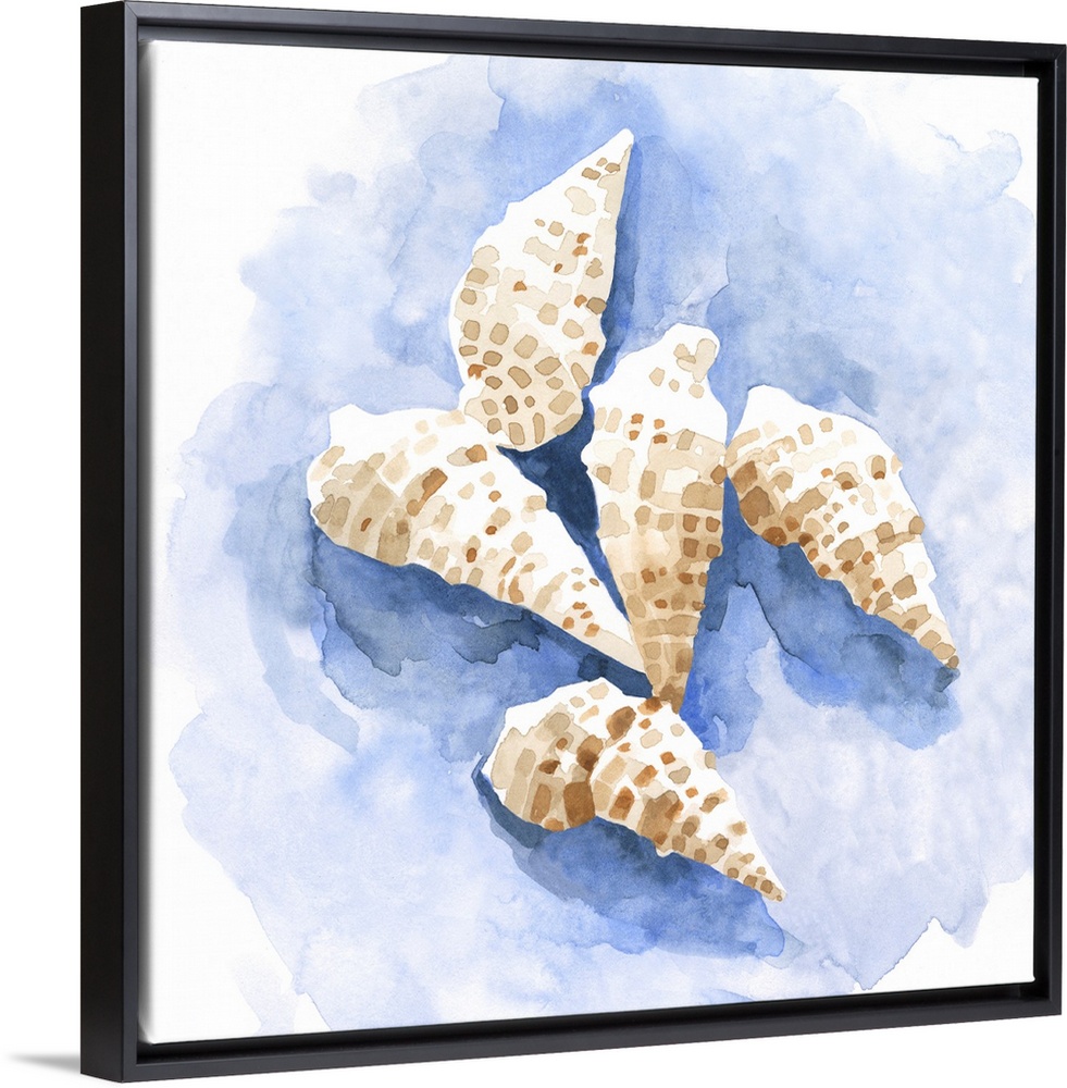 Art Coastal Bathroom Art Beach House Décor Blue Wall Art Emma Caroline Contemporary Art Painting Shells Watercolor