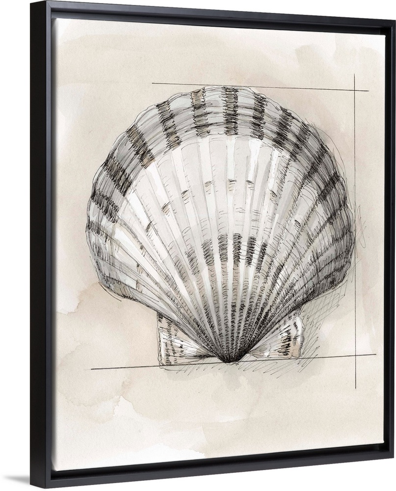 Art Beach House Décor Black and White Wall Art Decorative Art Drawing Megan Meagher Shells