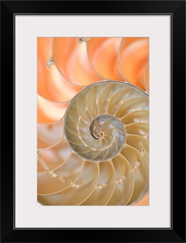 <p>A contemporary close-up of a nautilus shell rendered in glowing neutral tones.</p>