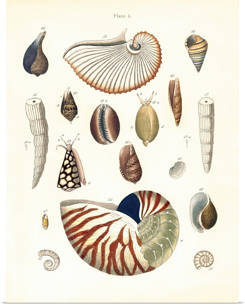 Art Porter Design Drawing Illustrations Shells Vintage Art