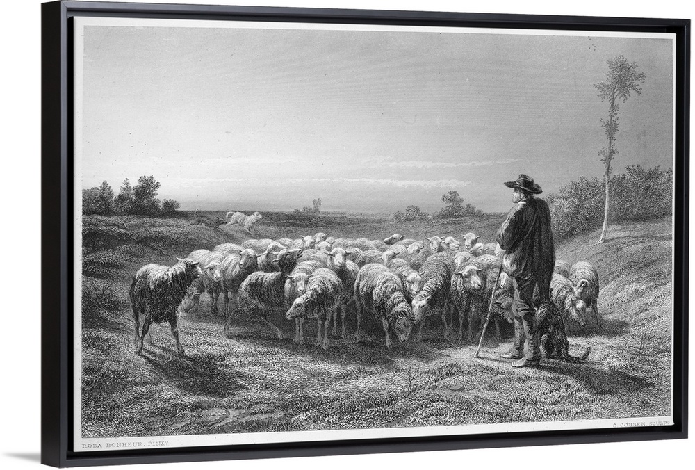 <p>Shepherd, 19th Century. Steel Engraving After Rosa Bonheur (1822-1899).</p>