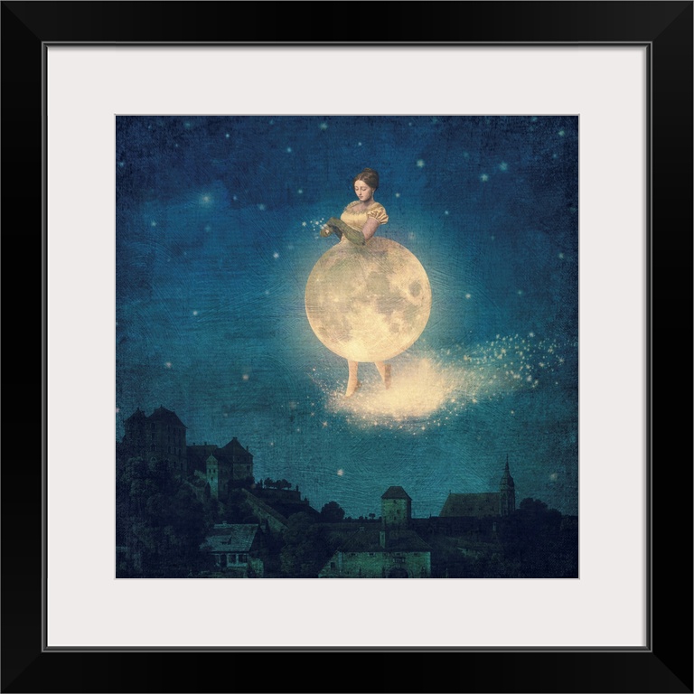 Art Blue Wall Art Paula Belle Flores Graphic Art Space Moon Surrealism