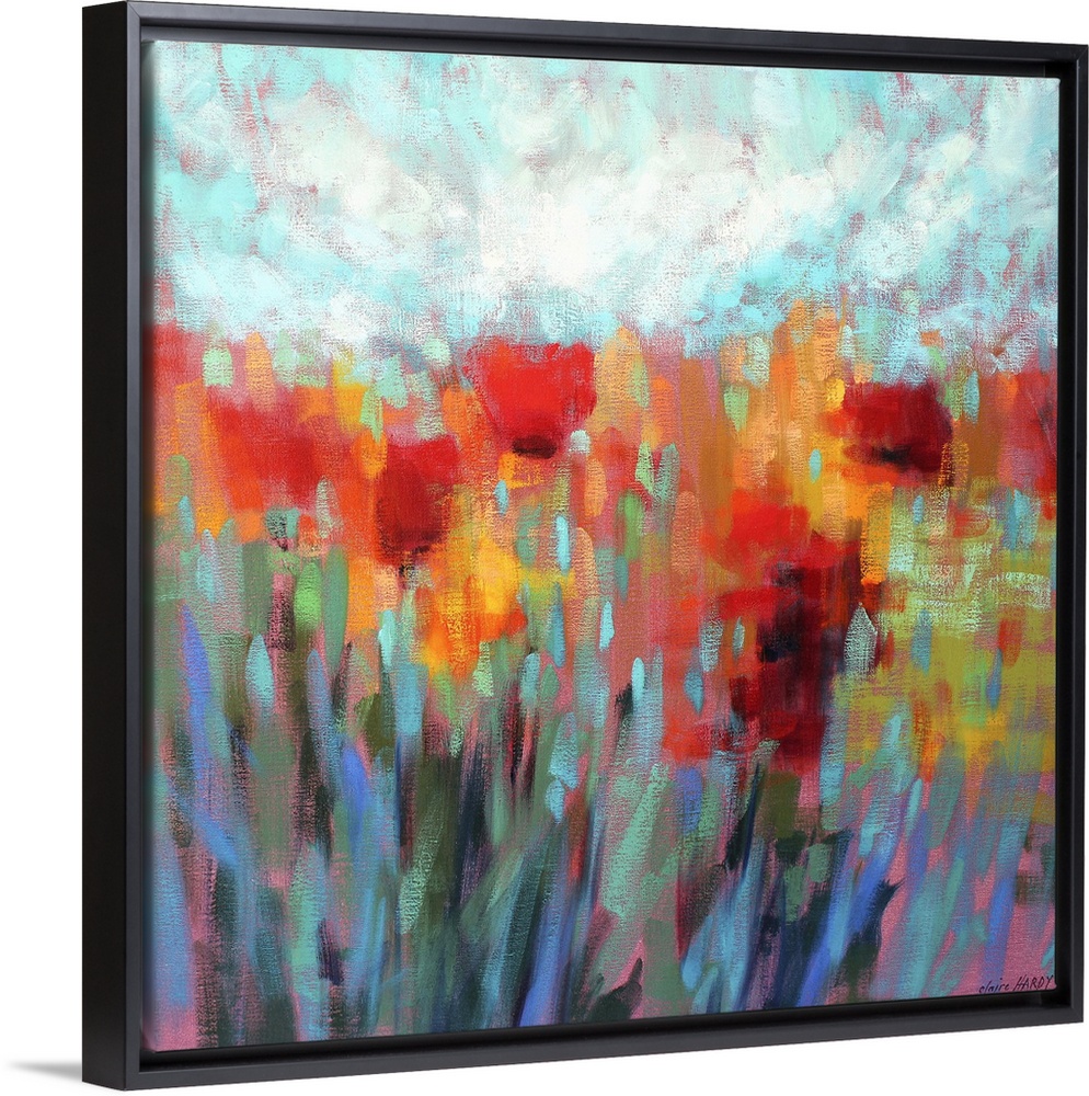 <p>A colorful contemporary painting of a field of flowers.</p>
