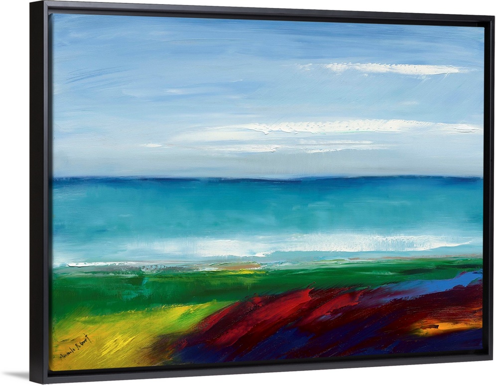 <p>Contemporary abstract painting representing a coastal landscape with bold colors.</p>