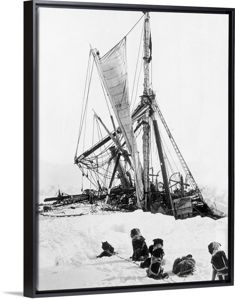 <p>During the British Imperial Trans-Antarctic Expedition, Sir Edmund Shackleton's boat Endurance sinks in the pack ice of the Weddell Sea while sled dogs sit and watch.</p>
