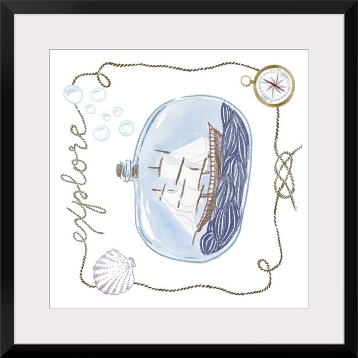 <p>Illustration of a sailing ship in a bottle with a rope reading "Explore."</p>