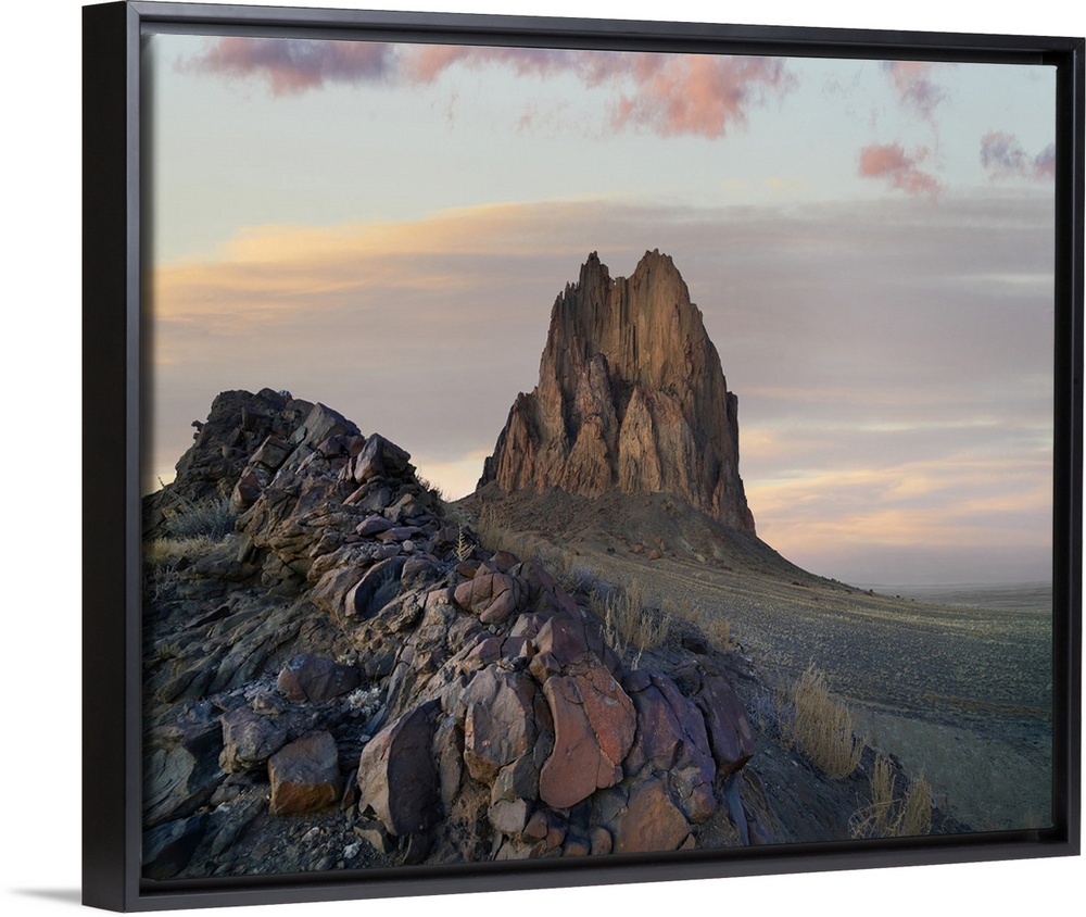 <p>Ship Rock at sunset, remnant basalt core of extinct volcano, New Mexico</p>