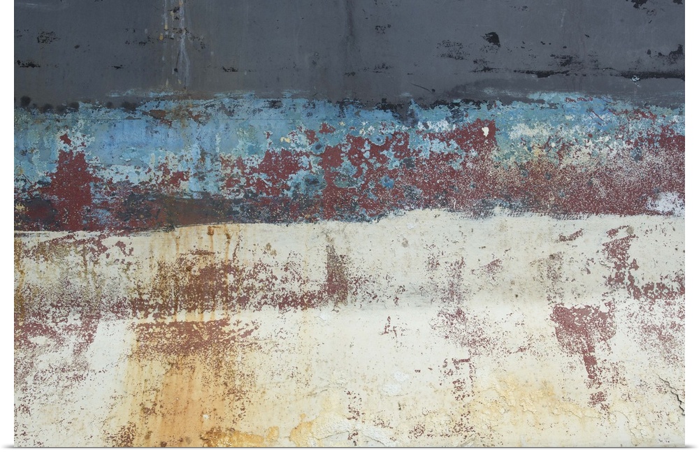 <p>An artistic photograph of a close abstract view of a ships hull looking weathered and rusty.</p>