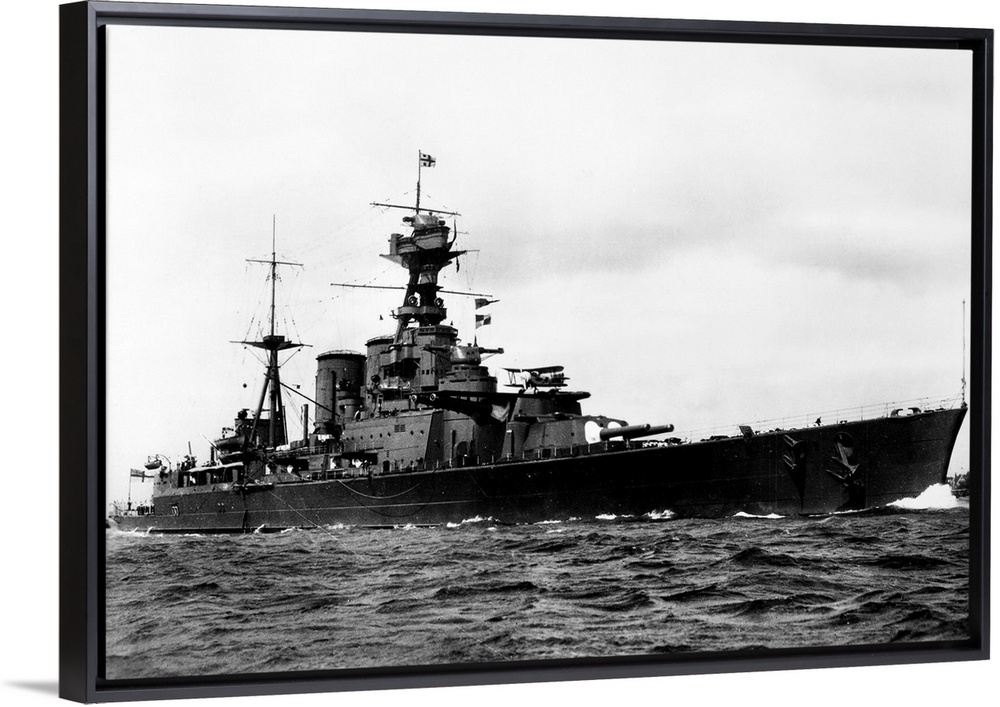 <p>HMS 'Hood,' launched in 1918 and sunk by the German battleship 'Bismarck' on 23 May 1941 with the loss of 1,416 officers and men; the largest warship in the world throughout her existence.</p>