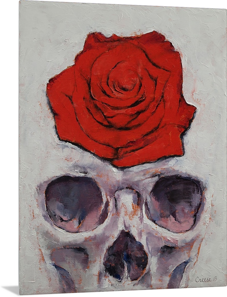 Art Contemporary Art Plants and Flowers Michael Creese Florals Rose Painting Red Wall Art Skulls