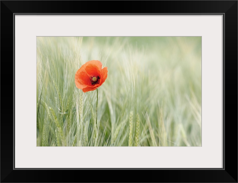 <p>Shirley Poppy in Barley Field, Franconia, Bavaria, Germany</p>