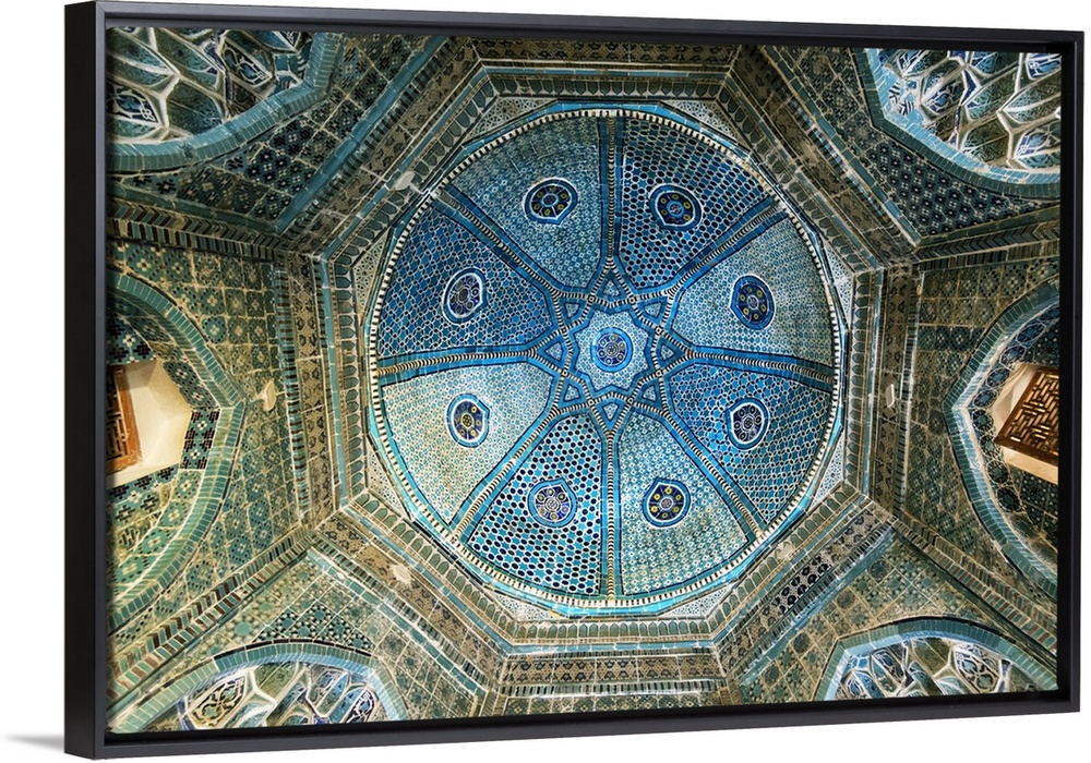 <p>Shodi Mulk Oko mausoleum, 1372, built in honor of Amir Timur's sister Turkon oko and her daughter Shodi Mulk oko. The Shah-i-Zinda Ensemble includes mausoleums and other ritual buildings of 9-14th and 19th centuries. A Unesco World Heritage Site, Samarkand. Uzbekistan</p>