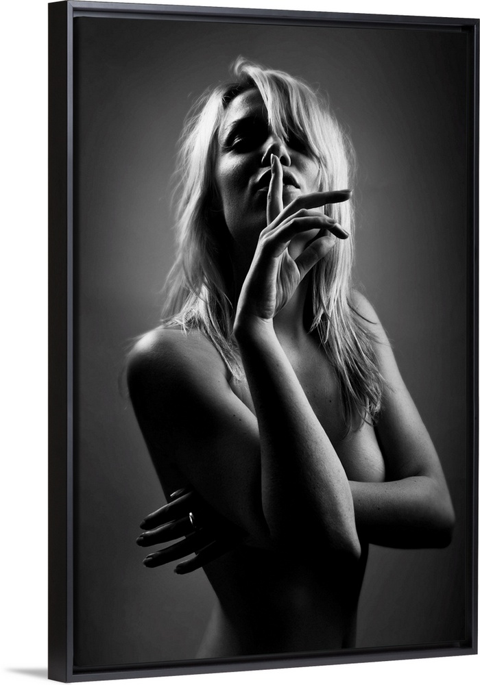 <p>Portrait of a beautiful woman holding a finger up to her mouth in silence.</p>