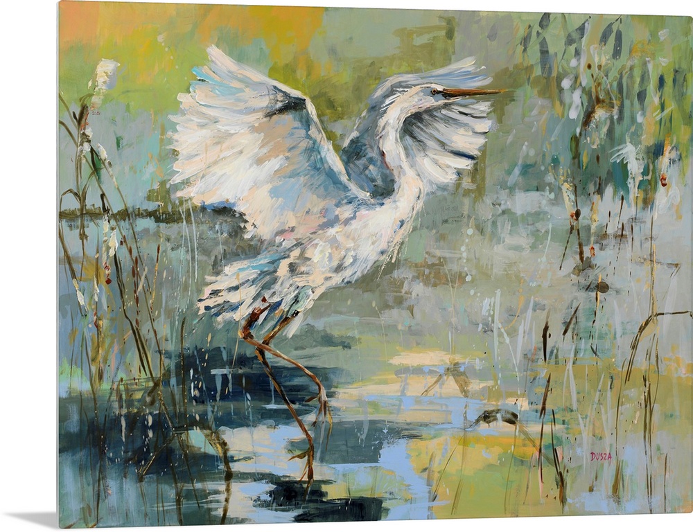 Art Coastal Matcha Contemporary Art Green Wall Art Painting Wildlife Bird Heron and Egret