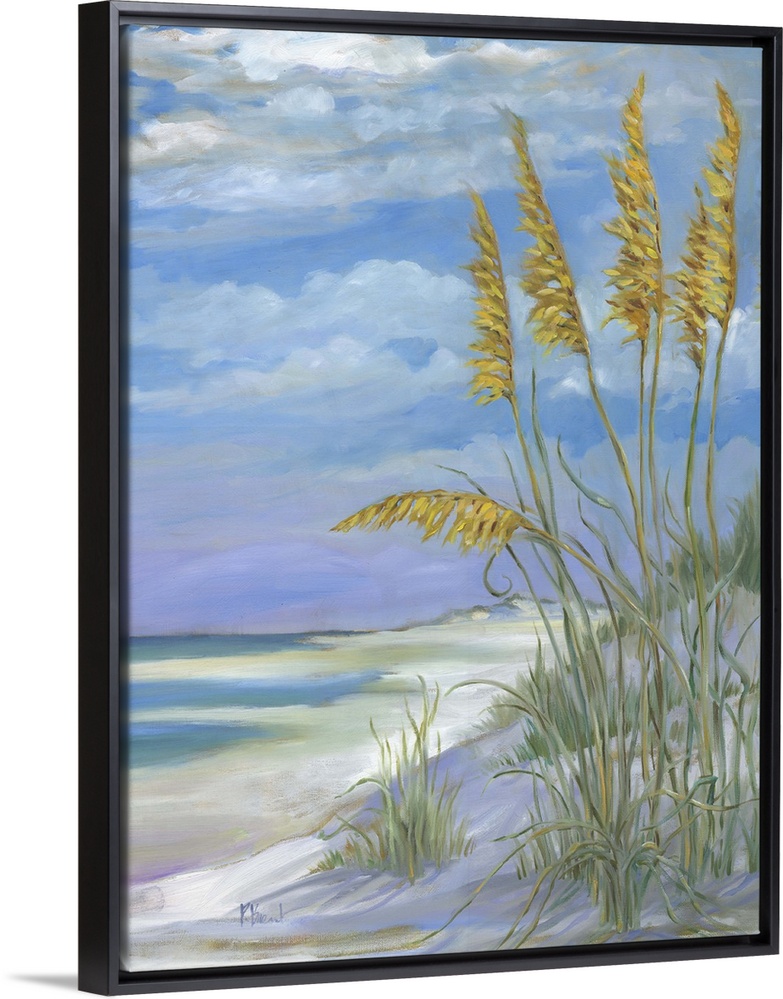 <p>Contemporary painting of tall beach grasses with fluffy seed heads on a sand dune.</p>