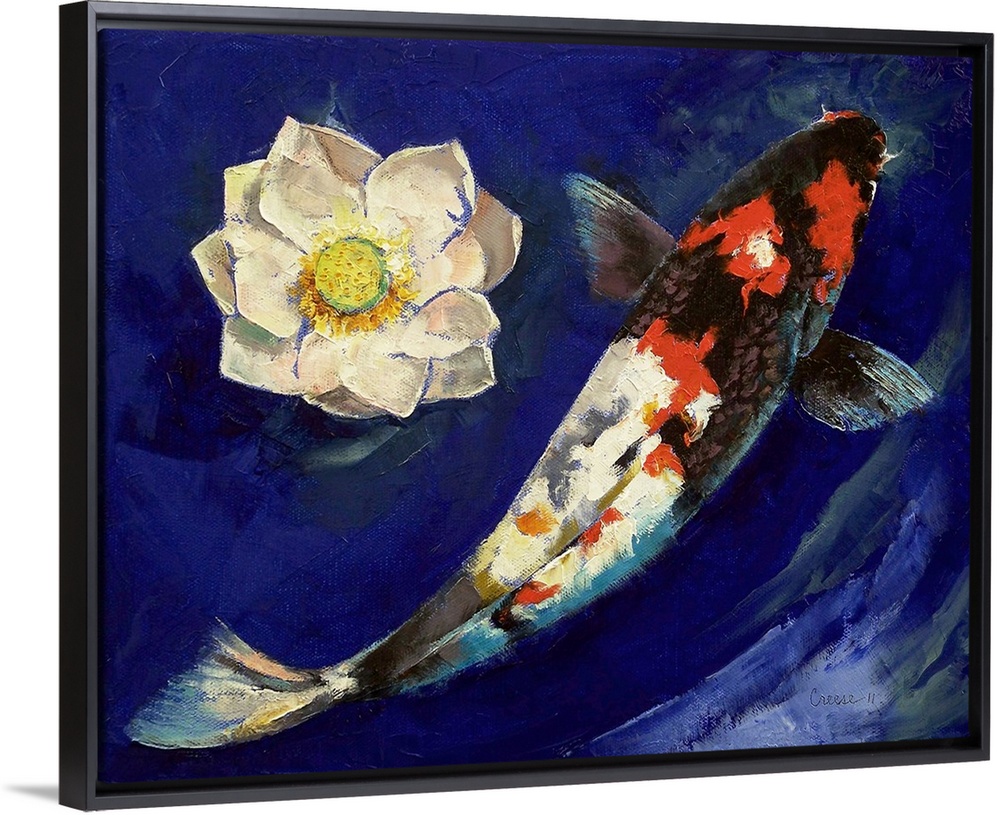 Art Blue Wall Art Contemporary Art Wildlife Michael Creese Florals Lily Water Lily Painting Wildlife Marine Life Fish Koi