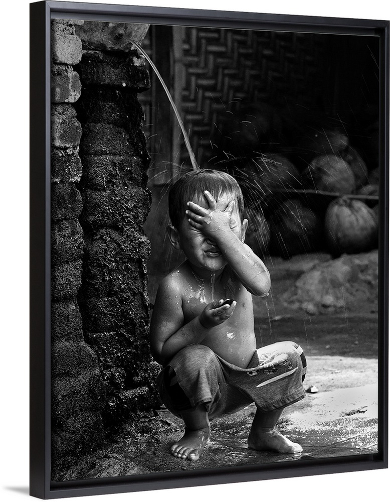 <p>A young boy sits under a stream of water in the village of Sade, Lombok, Indonesia.</p>