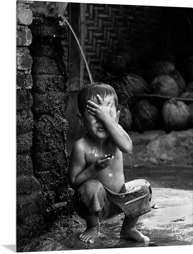 <p>A young boy sits under a stream of water in the village of Sade, Lombok, Indonesia.</p>