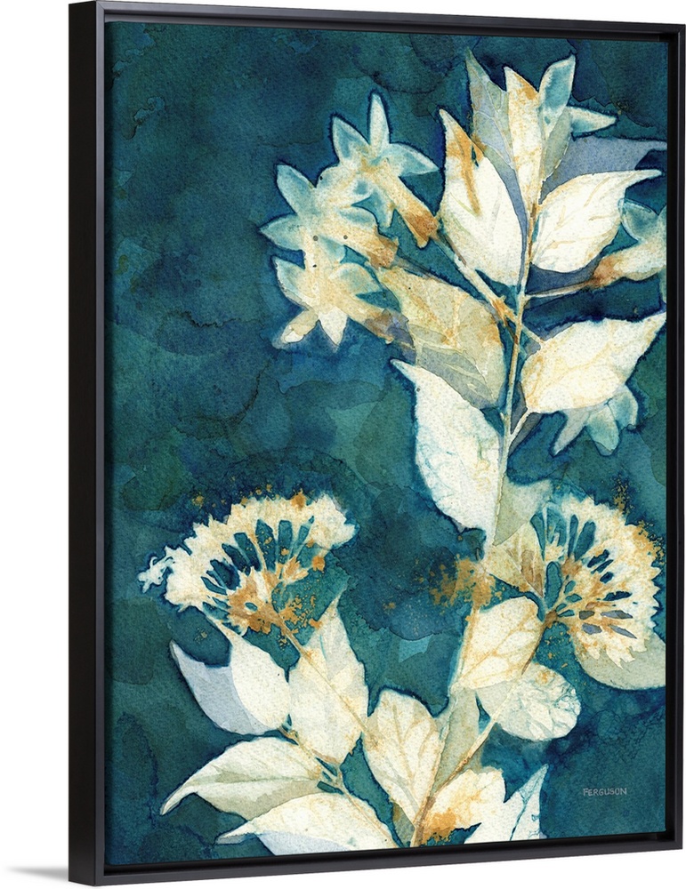 Art Contemporary and Modern Turquoise and Teal Contemporary Art Plants and Flowers Kathy Ferguson Florals Leaves Painting