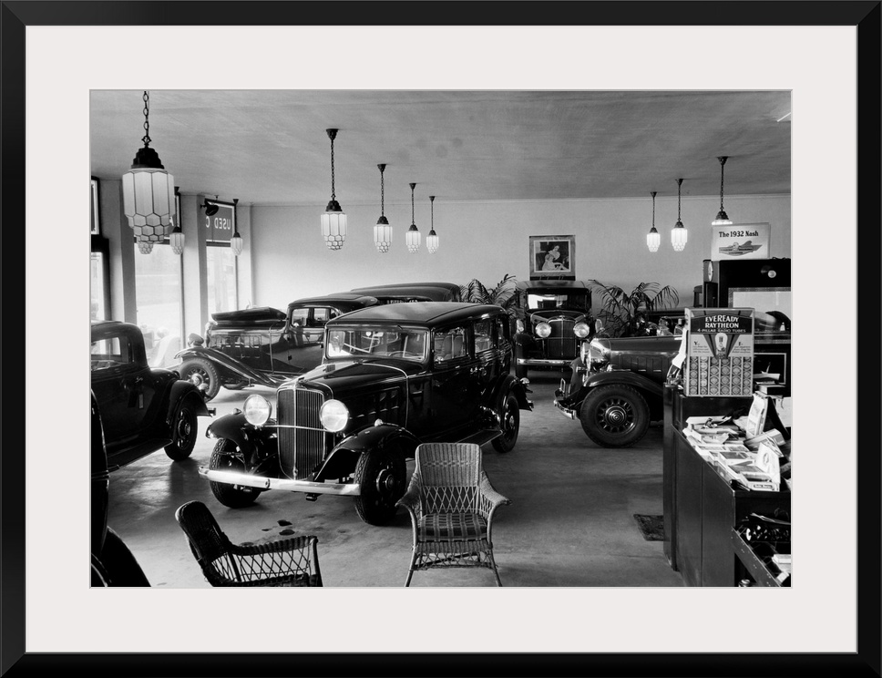 <p>Automobile showroom showing Nash cars, Huntington, L.I., New York.</p>