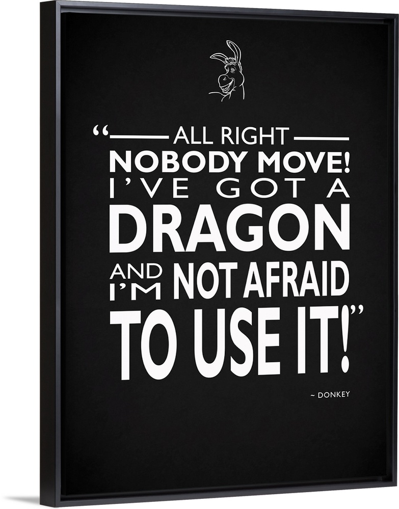 <p>"All right nobody move! I've got a dragon and I'm not afraid to use it!" -Donkey</p>