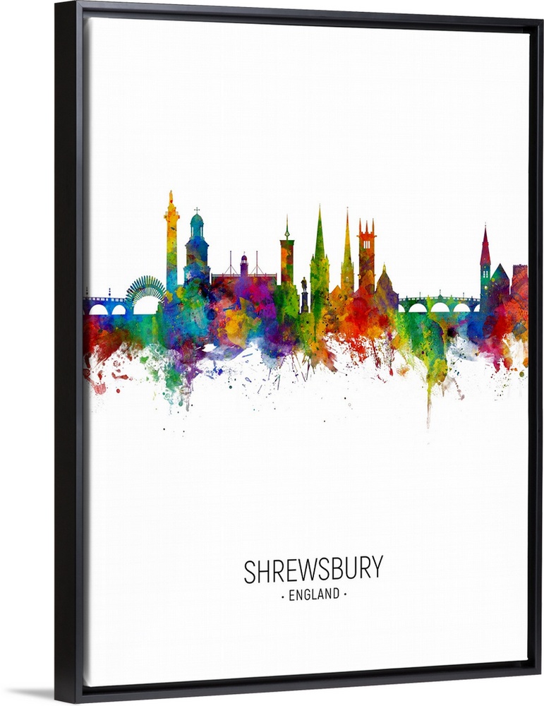 <p>Watercolor art print of the skyline of Shrewsbury, England, United Kingdom</p>