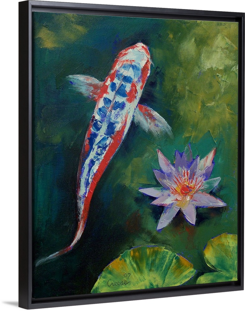 Art Contemporary Art Wildlife Michael Creese Florals Lily Green Wall Art Painting Wildlife Marine Life Fish Koi