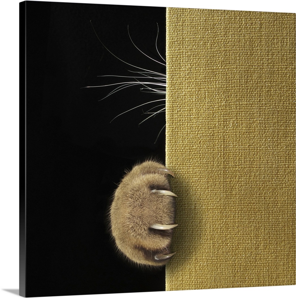 <p>A cat's paw with long and sharp claws and whiskers on a book cover.</p>