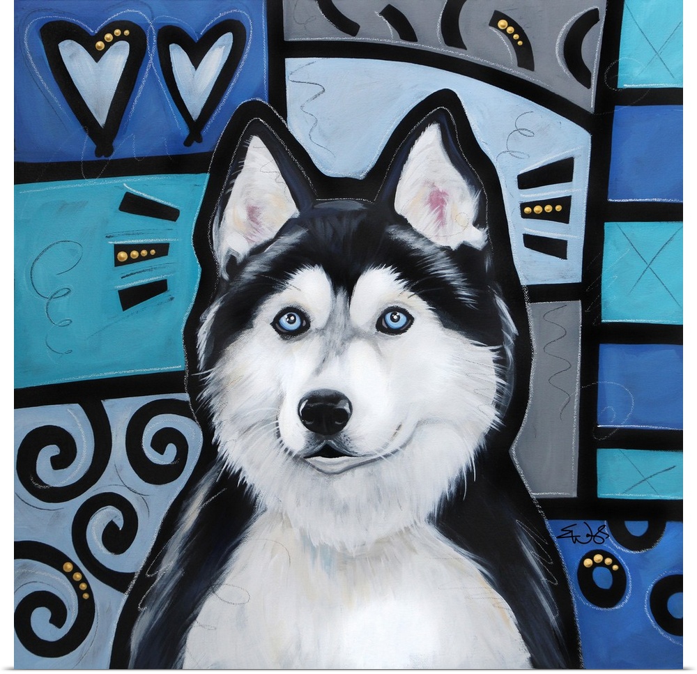 Art Blue Wall Art Decorative Art Painting Eric Waugh Wildlife Dog Husky