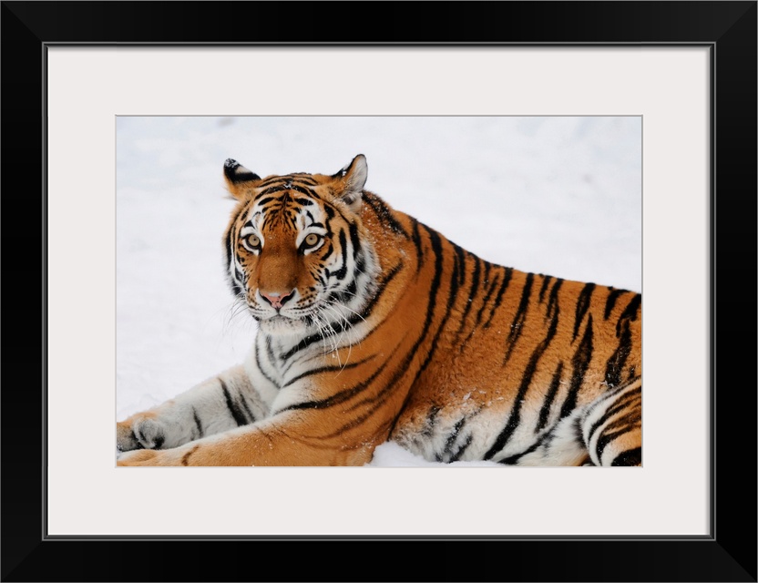 <p>Siberian tiger (Panthera tigris altaica) in wintertime in a Zoo, Germany</p>