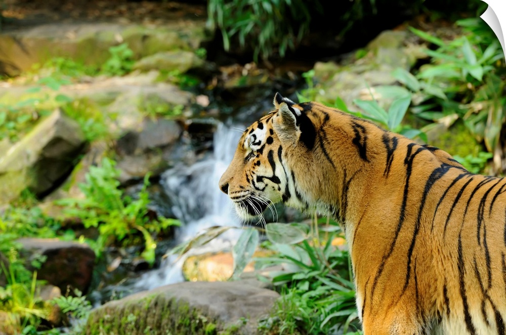<p>Siberian Tiger (Panthera tigris altaica) near Waterfall</p>