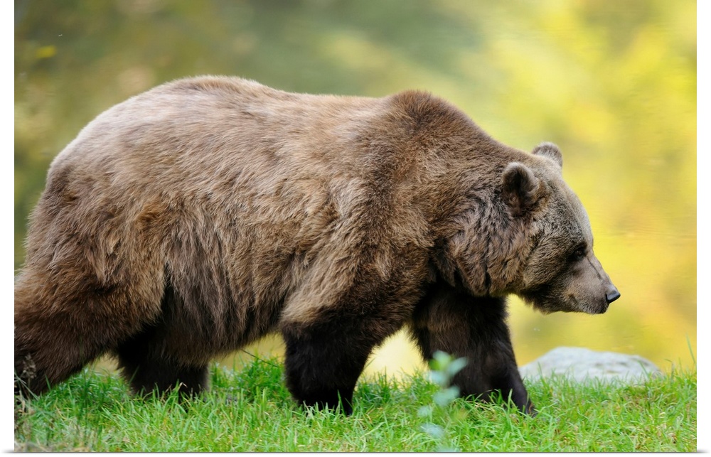 <p>Side View of European Brown Bear (Ursus arctos arctos) Walking, Bavarian Forest National Park, Bavaria, Germany</p>