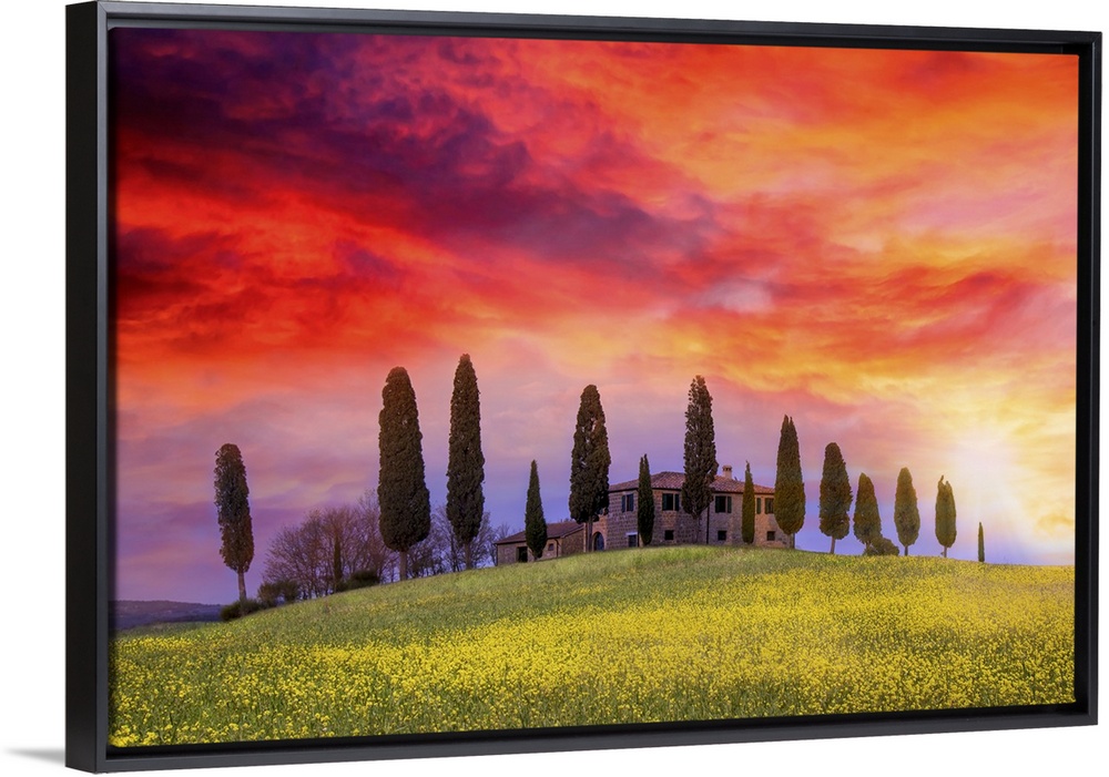 <p>This photo was taken during an amazing sunset near Pienza. It is a very popular Tuscan farm but what makes it unique in this photo are the color contrasts.</p>