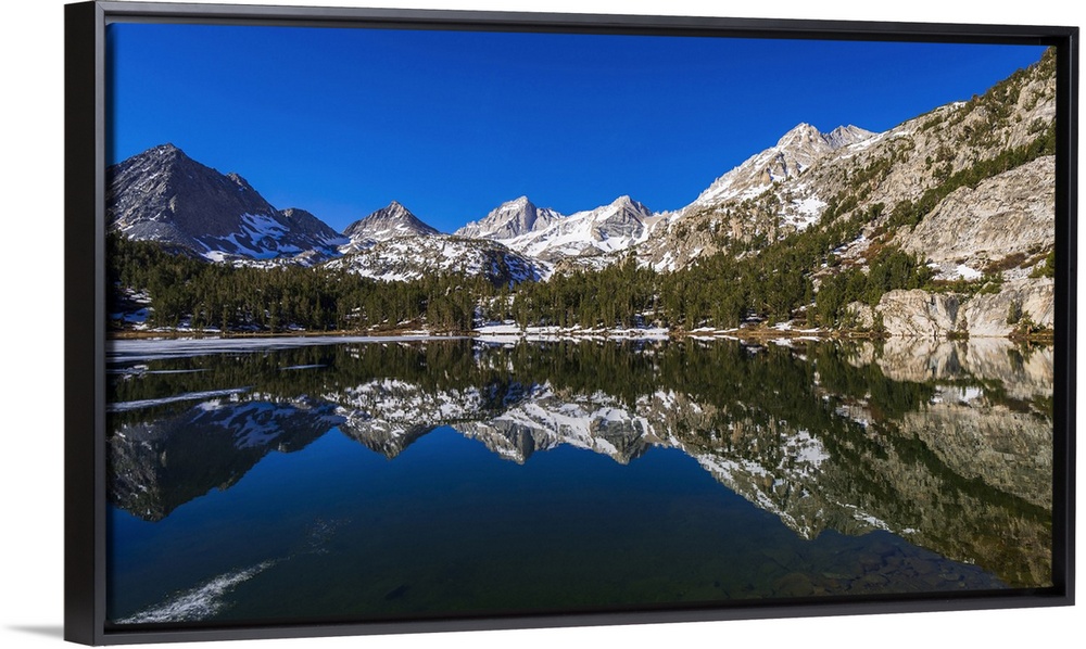 <p>Sierra peaks reflected in Long Lake, Little Lakes Valley, John Muir Wilderness, California, USA.</p>