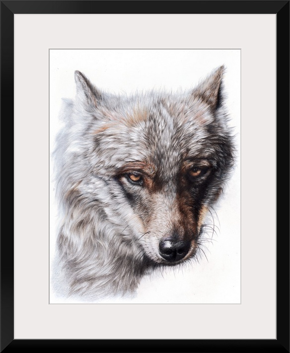 <p>'Sierra Spirit' is a close up portrait of a beautiful Iberian wolf created with colored pencils on Arches cold pressed watercolor paper.</p>